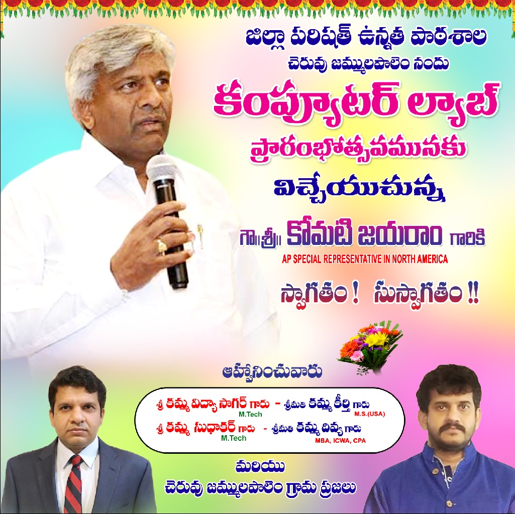 Jammulapalem ZPP High School: జమ్ములపాలెంలో డిజిటల్ విద్యకు శ్రీకారం.. కంప్యూటర్ ల్యాబ్‌ను ప్రారంభించిన ఎంపీ తెన్నేటి కృష్ణ ప్రసాద్, ఎమ్మెల్యే నరేంద్ర వర్మ, అమెరికా ప్రత్యేక ప్రతినిధి కోమటి జయరాం..!! Rythu Bharosa Funds Release: అన్నదాతలకు సర్కార్ కానుక.. రెండో విడత రైతు భరోసా డేట్ ఫిక్స్. 2026 New Cars: ఇక పెద్ద ఫ్యామిలీలకు పండగే.. 2026లో 10 కొత్త 7-సీటర్ కార్లు వస్తున్నాయ్! Kuttu Dahi Bhalla: చిటికెలో సిద్ధమయ్యే స్నాక్: కుట్టు పిండితో దహీ భల్లా.. తయారీ విధానం చాలా సులభం, ఆరోగ్యం కూడా.! AA22 Movie Updates: బన్నీ ఫ్యాన్స్‌కు పూనకాలే.. అట్లీ సినిమా నుంచి క్రేజీ అప్‌డేట్ వచ్చేసింది! Special Trains: నరసాపురం & అరుణాచలం, బెంగళూరు ప్రయాణికులకు గుడ్ న్యూస్.. వారికి సీట్ల లభ్యత పెంపు.. Tollywood: ఒకే ఒక్క సినిమా.. చెరగని ముద్ర.! చిన్నప్పుడే కాదు ఇప్పటీకీ అదే క్యూట్‌నెస్.. సోషల్ మీడియాలో వైరల్! AP Government Schemes: ఏపీ ప్రభుత్వం కీలక నిర్ణయం.. అంగన్‌వాడీల్లో ఇక ఇండక్షన్ స్టవ్‌లతోనే వంట.! Jio New Plan: నెలవారీ రీఛార్జ్ టెన్షన్‌కు జియో చెక్: రూ. 339 ప్లాన్ పూర్తి వివరాలు! Mango Pulihora: "ఆహా ఏమి రుచి": ఈ వేసవిలో పచ్చి మామిడికాయ పులిహోర.. ఇలా చేస్తే అమృతంలా ఉంటుంది! Jammulapalem ZPP High School: జమ్ములపాలెంలో డిజిటల్ విద్యకు శ్రీకారం.. కంప్యూటర్ ల్యాబ్‌ను ప్రారంభించిన ఎంపీ తెన్నేటి కృష్ణ ప్రసాద్, ఎమ్మెల్యే నరేంద్ర వర్మ, అమెరికా ప్రత్యేక ప్రతినిధి కోమటి జయరాం..!! Rythu Bharosa Funds Release: అన్నదాతలకు సర్కార్ కానుక.. రెండో విడత రైతు భరోసా డేట్ ఫిక్స్. 2026 New Cars: ఇక పెద్ద ఫ్యామిలీలకు పండగే.. 2026లో 10 కొత్త 7-సీటర్ కార్లు వస్తున్నాయ్! Kuttu Dahi Bhalla: చిటికెలో సిద్ధమయ్యే స్నాక్: కుట్టు పిండితో దహీ భల్లా.. తయారీ విధానం చాలా సులభం, ఆరోగ్యం కూడా.! AA22 Movie Updates: బన్నీ ఫ్యాన్స్‌కు పూనకాలే.. అట్లీ సినిమా నుంచి క్రేజీ అప్‌డేట్ వచ్చేసింది! Special Trains: నరసాపురం & అరుణాచలం, బెంగళూరు ప్రయాణికులకు గుడ్ న్యూస్.. వారికి సీట్ల లభ్యత పెంపు.. Tollywood: ఒకే ఒక్క సినిమా.. చెరగని ముద్ర.! చిన్నప్పుడే కాదు ఇప్పటీకీ అదే క్యూట్‌నెస్.. సోషల్ మీడియాలో వైరల్! AP Government Schemes: ఏపీ ప్రభుత్వం కీలక నిర్ణయం.. అంగన్‌వాడీల్లో ఇక ఇండక్షన్ స్టవ్‌లతోనే వంట.! Jio New Plan: నెలవారీ రీఛార్జ్ టెన్షన్‌కు జియో చెక్: రూ. 339 ప్లాన్ పూర్తి వివరాలు! Mango Pulihora: "ఆహా ఏమి రుచి": ఈ వేసవిలో పచ్చి మామిడికాయ పులిహోర.. ఇలా చేస్తే అమృతంలా ఉంటుంది!