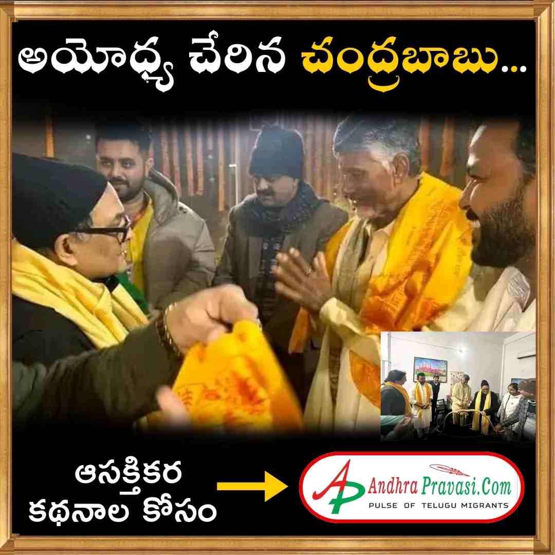 శ్రీరాముల వారి ఆశీస్సుల కోసం అయోధ్యకు ఆధ్యాత్మిక ప్రయాణం ప్రారంభించిన తెలుగుదేశం పార్టీ అధినేత నారా చంద్రబాబు నాయుడు అయోధ్యకు చేరుకున్నారు. చంద్రబాబు వెంట శ్రీకాకుళం ఎంపీ కింజారపు రామ్మోహన్ నాయుడు ఉన్నారు. జై శ్రీరామ
