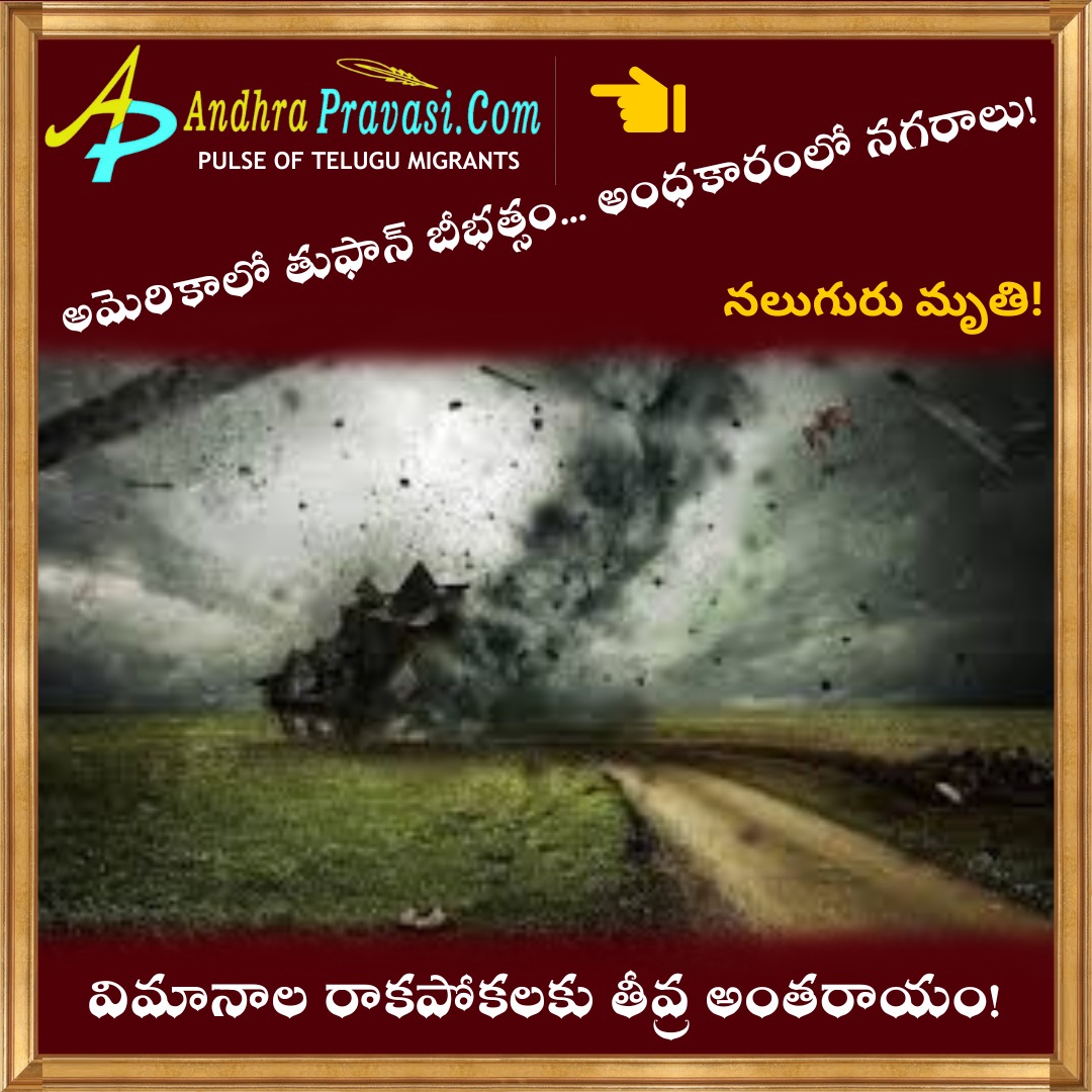 అమెరికాలో తుఫాన్‌ బీభత్సం... అంధకారంలో నగరాలు! నలుగురు మృతి! విమానాల రాకపోకలకు తీవ్ర అంతరాయం!