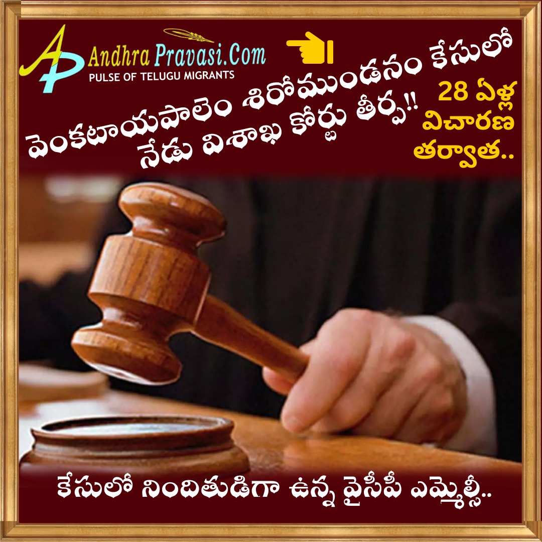 వెంకటాయపాలెం శిరోముండనం కేసులో నేడు విశాఖ కోర్టు తీర్పు - 28 ఏళ్ల విచారణ తర్వాత నేడు విశాఖ కోర్టులో వెలువడనున్న తీర్పు - 1996 డిసెంబర్ 29న కోనసీమ జిల్లా రామచంద్రపురం మండలం వెంకటాయపాలెంలో ఘటన