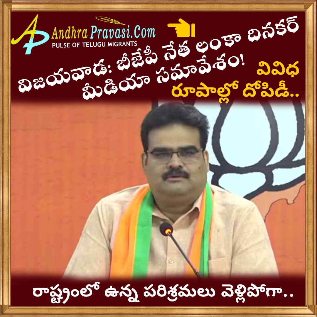 విజయవాడ: బీజేపీ నేత లంకా దినకర్ మీడియా సమావేశం: జగన్ అసమర్థ పాలనలో పేదల జీవనం ప్రశ్నార్థకమైంది - ఆర్థికంగా ఆదాయాలన్నీ పడిపోయి అవస్థలు పడుతున్నారు - ఉద్యోగ, ఉపాధి అవకాశాలు లేక వలసలు వెళ్లే పరిస్థితి - రాష్ట్రంలో ఉన్న పరిశ్రమలు వెళ్లిపోగా.. కొత్తవి రాలేదు