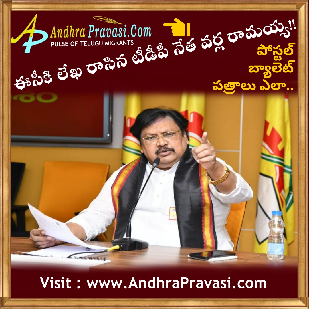 ఈసీకి లేఖ రాసిన టీడీపీ నేత వర్ల రామయ్య!! పోస్టల్ బ్యాలెట్ పత్రాలు ఎలా..