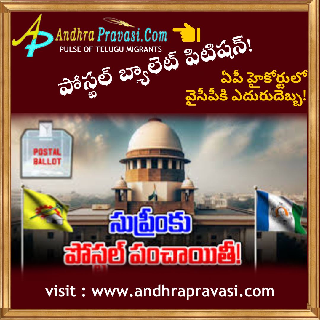 పోస్టల్ బ్యాలెట్ పై సుప్రీంకోర్టులో టీడీపీ నేత వెలగపూడి కేవియట్. వెలగపూడి తరపున కేవియట్ దాఖలు చేసిన సీనియర్ కౌన్సిల్ గుంటూరు ప్రభాకర్. పోస్టల్ బ్యాలెట్ కేసులో వైసీపీకి ఏపీ హైకోర్టులో ఎదురుదెబ్బ. హైకోర్టు తీర్పును సుప్రీంకోర్టులో సవాల్ చేయనున్న వైసీపీ. వైసీపీ సుప్రీంకోర్టును ఆశ్రయిస్తే తమ వాదన కూడా విన్న తర్వాతే నిర్ణయం తీసుకోవాలని వెలగపూడి కేవియట్.