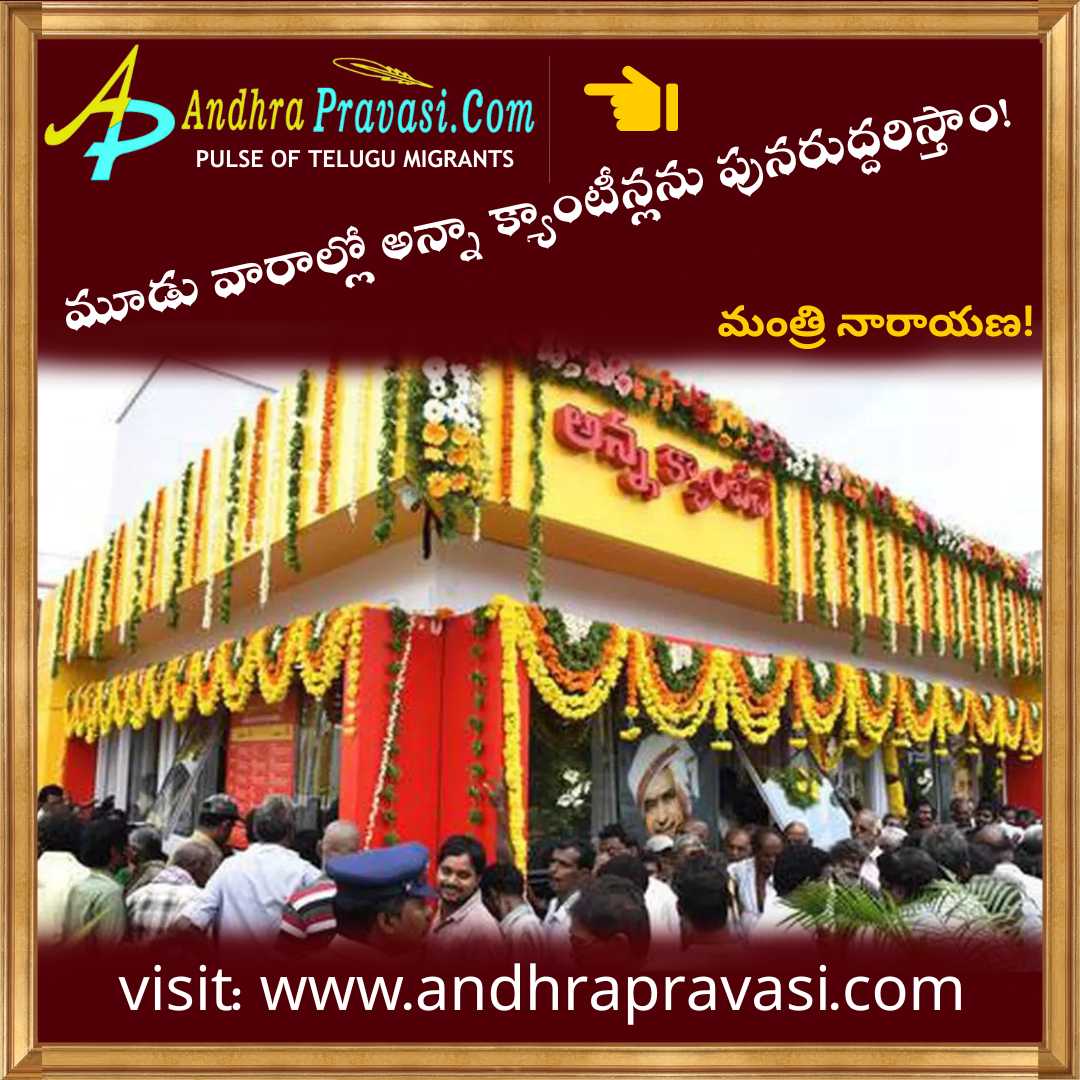 మూడు వారాల్లో అన్నా క్యాంటీన్లను పునరుద్దరిస్తాం! మంత్రి నారాయణ!