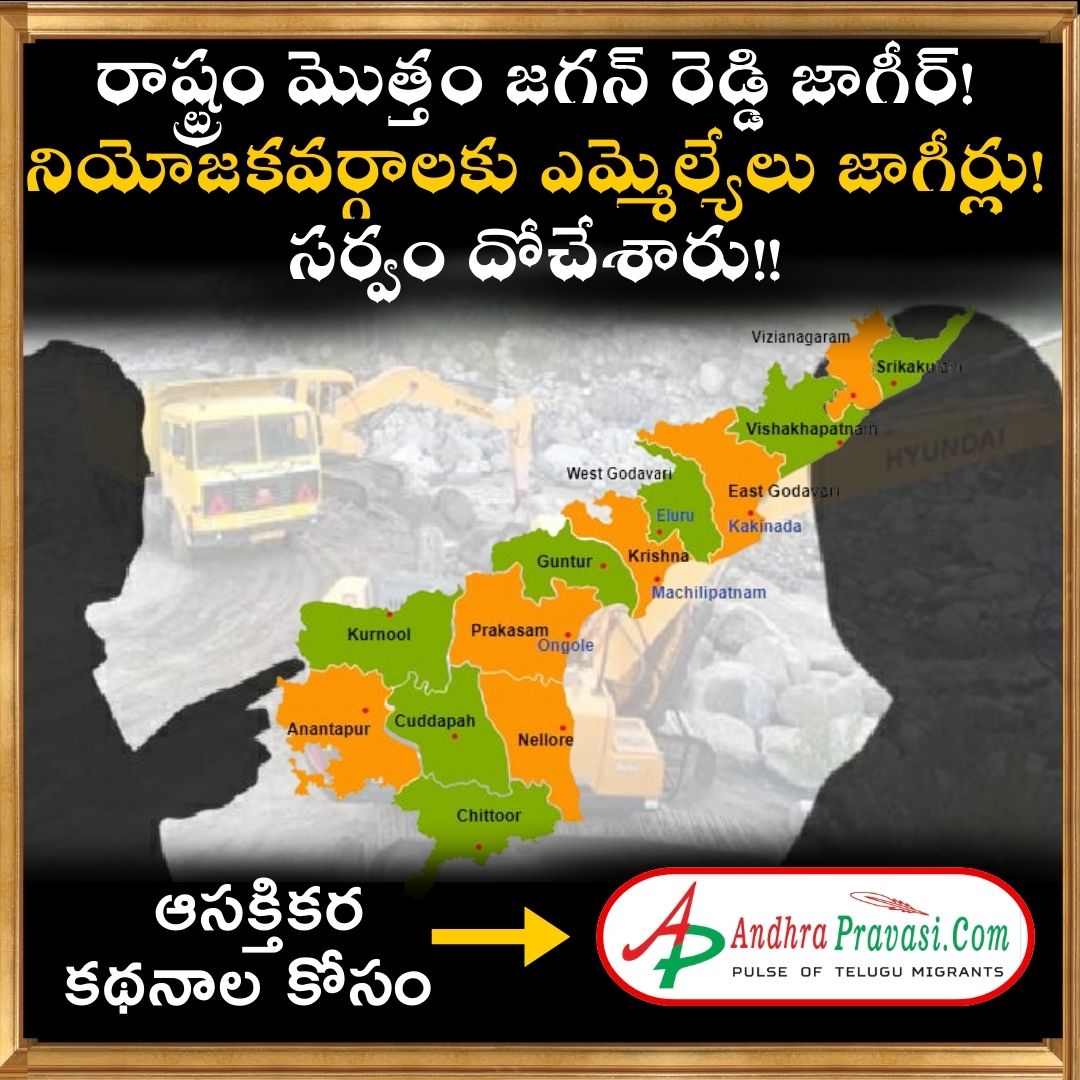 రాష్ట్రం మొత్తం జగన్ రెడ్డి జాగీర్! నియోజకవర్గాలకు ఎమ్మెల్యేలు జాగీర్లు! సర్వం దోచేశారు!!