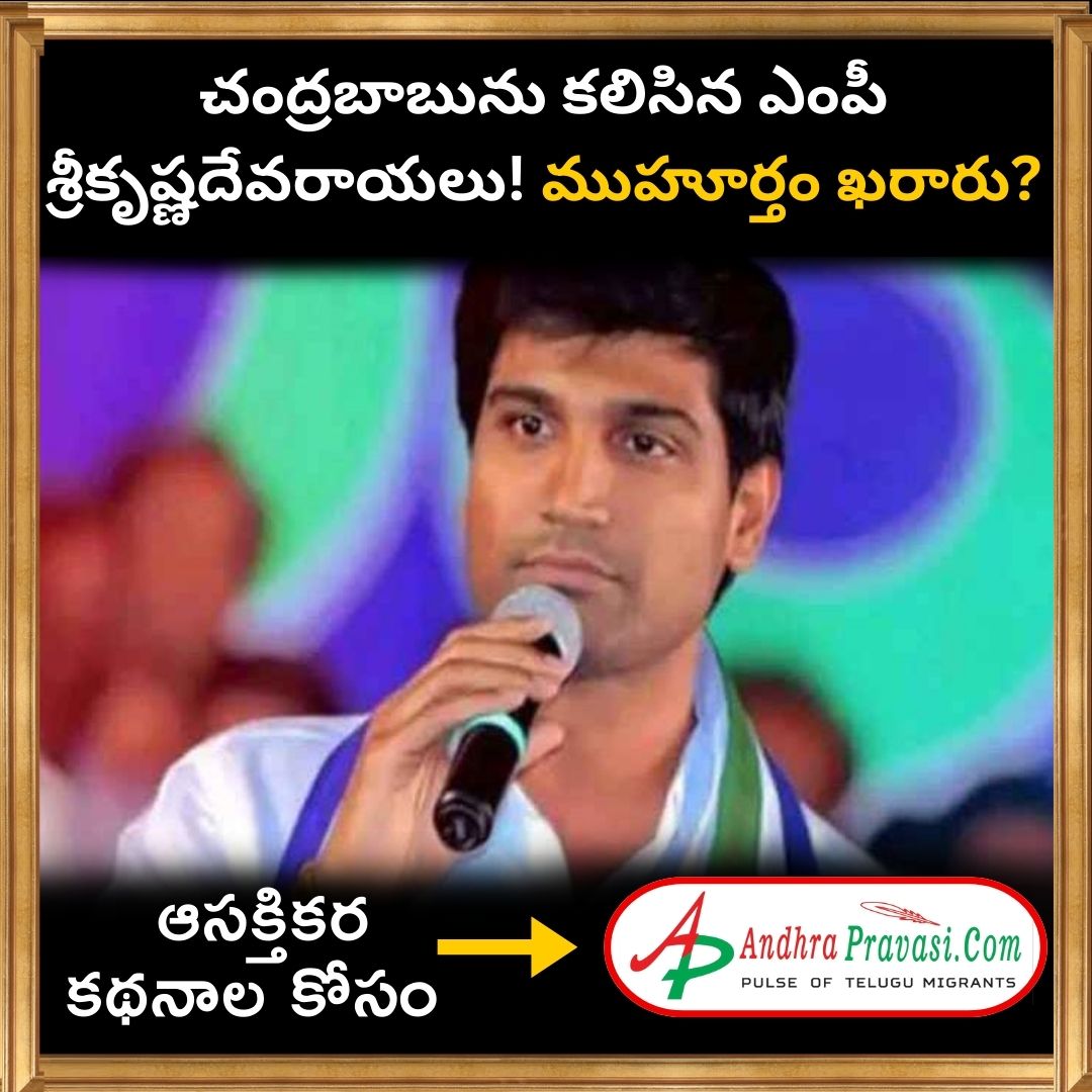 సీఎం జగన్ కు బిగ్ షాక్... టీడీపీ అధినేత చంద్రబాబును కలిసిన నరసరావుపేట ఎంపీ లావు శ్రీకృష్ణదేవరాయులు... ఈ నెల 22న టీడీపీలోకి చేరనున్నట్లు తెలుస్తోంది. ఇటీవల ఎంపీ పదవికి, వైసీపీ సభ్యత్వానికి రాజీనామా చేసిన శ్రీకృష్ణదేవరాయులు...