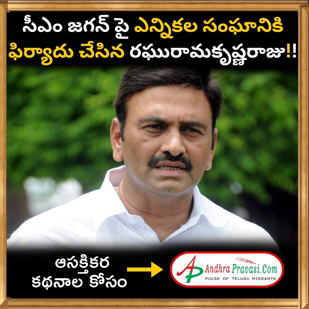 సీఎం జగన్ పై ఎన్నికల సంఘానికి ఫిర్యాదు చేసిన రఘురామకృష్ణరాజు!!
