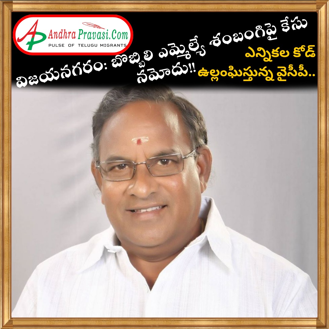 విజయనగరం: బొబ్బిలి ఎమ్మెల్యే శంబంగిపై కేసు నమోదు!! ఎన్నికల కోడ్ ఉల్లంఘిస్తున్న వైసీపీ..