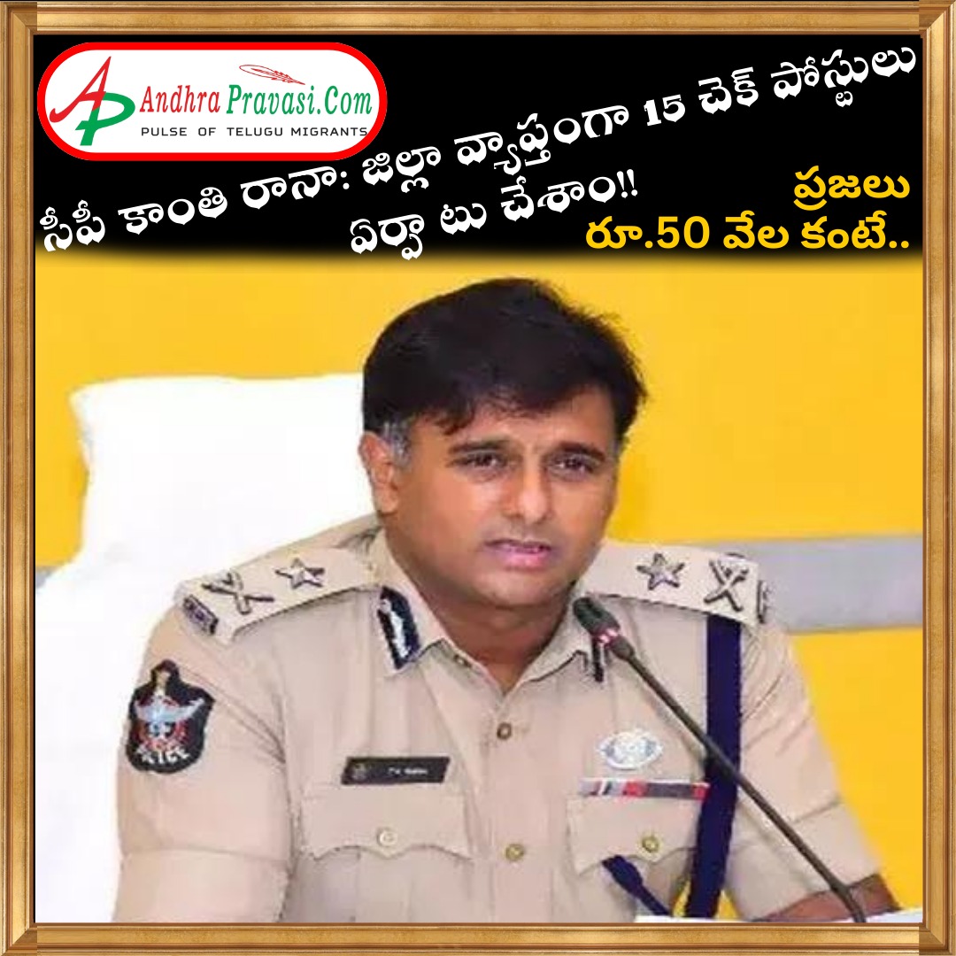 సీపీ కాంతిరాణా: జిల్లా వ్యాప్తంగా 15 చెక్ పోస్టులు ఏర్పాటు చేశారు!! ప్రజలు రూ.50 వేల కంటే..
