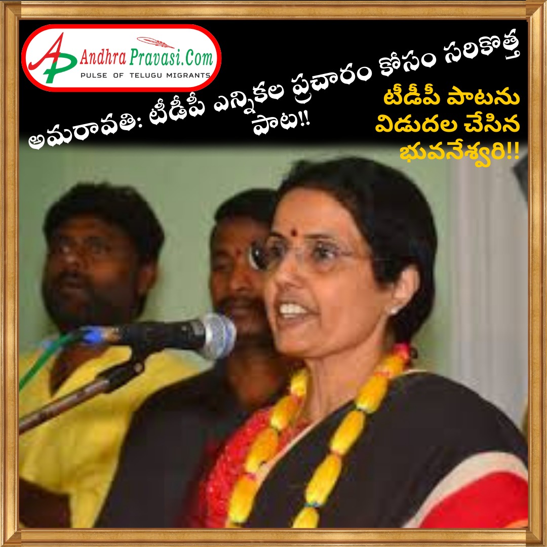అమరావతి: టీడీపీ ఎన్నికల ప్రచారం కోసం సరికొత్త పాట!! టీడీపీ పాటను విడుదల చేసిన భువనేశ్వరి!!