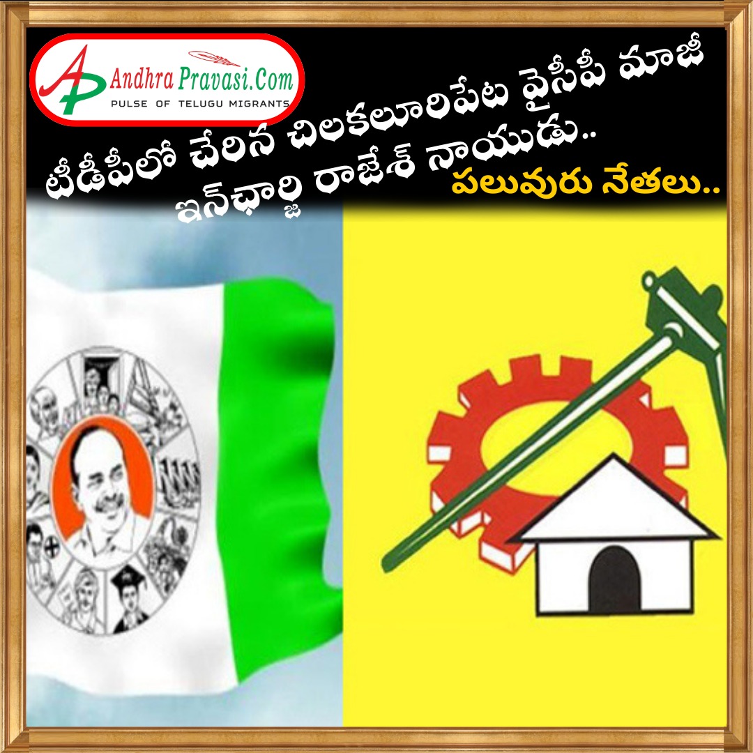ఎన్నికలకు సమయం దగ్గర పడుతున్న సమయంలో చిలకలూరిపేట వైసీపీ నేతలు పెద్ద సంఖ్యలో టీడీపీలో చేరారు. చిలకలూరిపేట నియోజకవర్గ మాజీ ఇన్ఛార్జీ రాజేశ్ నాయుడు, మున్సిపల్ వైస్ ఛైర్మన్ గోల్డ్ శ్రీను టీడీపీలో చేరారు.