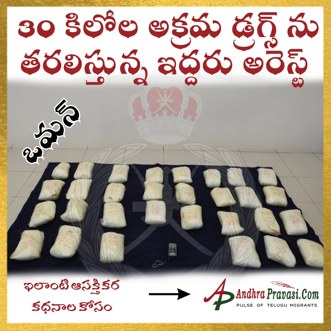 మస్కట్: ఒమన్లోకి 30 కిలోల కంటే ఎక్కువ క్రిస్టల్ డ్రగ్ను అక్రమంగా తరలించేందుకు ప్రయత్నించిన ఇద్దరు స్మగ్లర్లను మస్కట్ గవర్నరేట్లో రాయల్ ఒమన్ పోలీసులు (ఆర్ఓపి) అరెస్టు చేశారు.