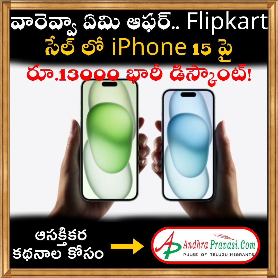 Flipkart లో (iPhone 15) పై ఆఫర్ వివరాలు: Flipkart లో, మీరు 128GB మోడల్ను కేవలం రూ. 66,999 కి పొందవచ్చు, ఇది అసలు ధర కంటే దాదాపు రూ. 13,000 తక్కువ.