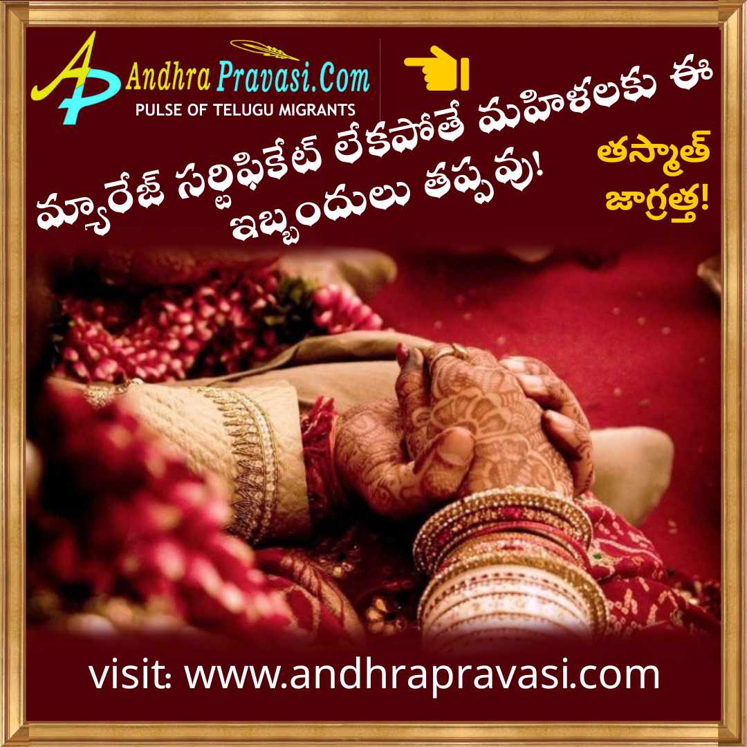 హిందూ వివాహ చట్టం 1955 ప్రకారం వివాహ నమోదు మన ఇష్టంపైనే ఆధారపడి ఉంటుంది. అయితే భవిష్యత్తులో ఎలాంటి సమస్యలు తలెత్తకుండా ఉండేందుకు మహిళలు తమ వివాహాన్ని నమోదు చేసుకోవాల్సిన అవసరం ఉందంటున్నారు నిపుణులు. ముఖ్యంగా వివాహం తర్వాత తన ఇంటిపేరును మార్చుకోని స్త్రీకి వివాహ ధృవీకరణ పత్రం చాలా ముఖ్యమైనది. కాగా అది లేకపోతే మహిళలు ఎదుర్కొనే సమస్యలు ఏంటో తెలుసుకుందాం.