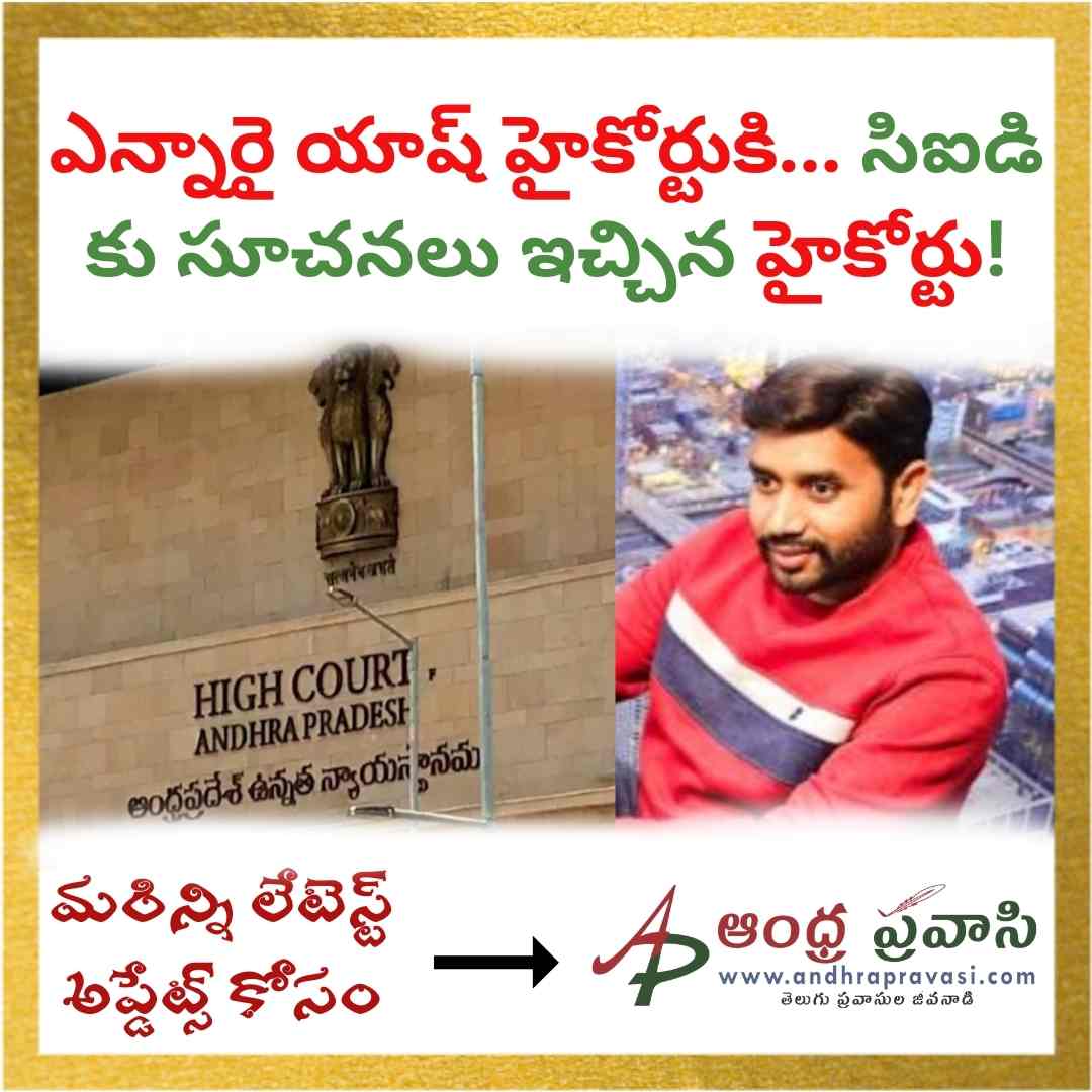 హైకోర్టులో పిటిషన్ దాఖలు చేసిన ఎన్ఆర్ఐ యశస్వి – తనపై సీఐడీ లుకౌట్ నోటీసు ఎత్తివేయాలని యశస్వి పిటిషన్ – పిటిషనర్ ను సీఐడీ అరెస్టు చేసి 41ఏ నోటీసు ఇచ్చిందన్న లాయర్ – లుకౌట్ నోటీసు వల్ల విదేశాలకు వెళ్లాలంటే పిటిషనర్ కు ఇబ్బందన్న లాయర్.