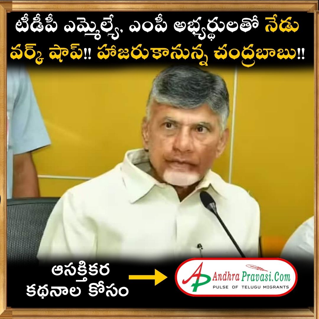 టీడీపీ ఎమ్మెల్యే, ఎంపీ అభ్యర్థులతో నేడు వర్క్ షాప్