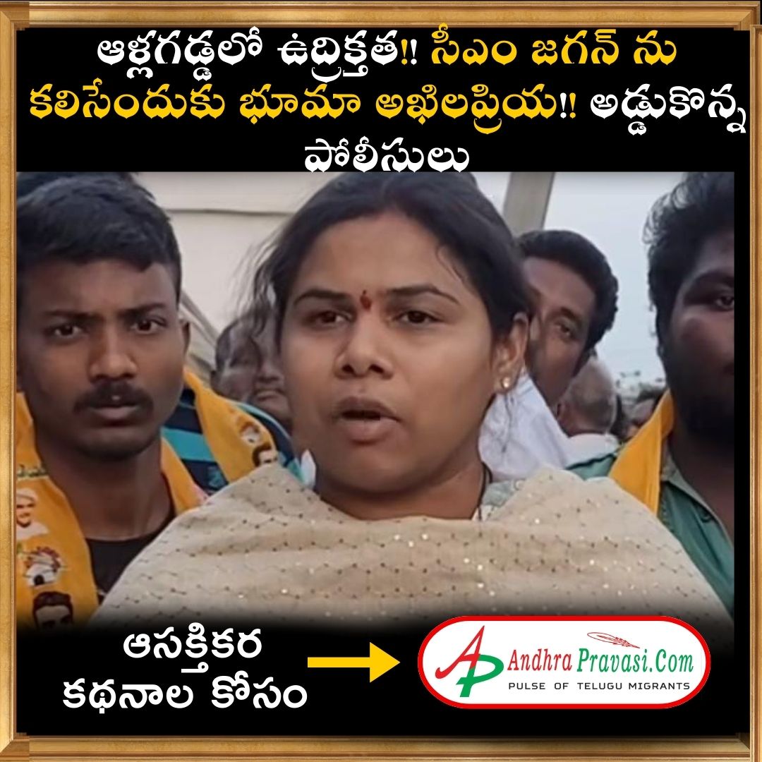 కర్నూలు జిల్లా ఆళ్లగడ్డలో ఉద్రిక్తత... సీఎం జగన్ ను కలిసేందుకు వెళ్లిన మాజీ మంత్రి అఖిలప్రియ... అఖిలప్రియను అడ్డుకొని ఇద్దరు రైతులను జగన్ దగ్గరకు తీసుకెళ్లిన పోలీసులు... రైతుల సమస్యలను జగన్ దృష్టికి తీసుకెళ్లేందుకే వచ్చా అని మాజీ మంత్రి భూమా అఖిలప్రియ తెలిపారు.