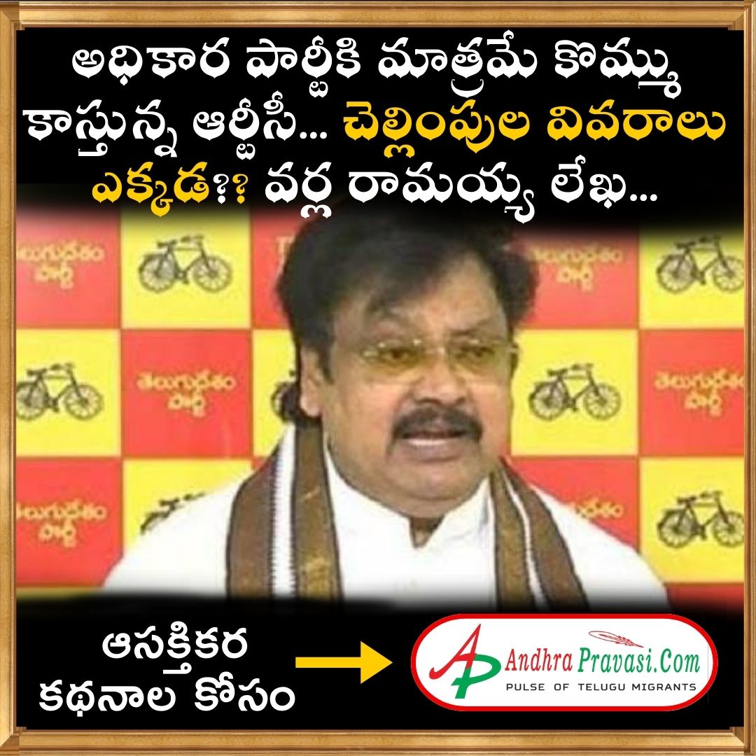 అమరావతి: రాజకీయ పార్టీలు సభలు, సమావేశాలు ఏర్పాటు చేసుకునే సమయంలో అద్దెకు ఆర్టీసీ బస్సులను నడపటం ఎప్పటినుంచో జరుగుతుంది. అయితే అధికార పార్టీ వైఎస్సార్ సీపీ సభకు మాత్రమే బస్సులు సప్లై చేయడాన్ని టీడీపీ పోలిట్ బ్యూరో సభ్యుడు వర్ల రామయ్య తప్పుపట్టారు. ఈ మేరకు ఏపీఎస్ ఆర్టీసీ వైస్ చైర్మన్, మేనేజింగ్ డైరెక్టర్లకు టీడీపీ నేత వర్ల రామయ్య లేఖ రాశారు.