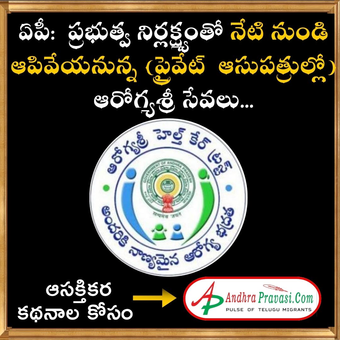 ఆంధ్రప్రదేశ్ రాష్ట్రవ్యాప్తంగా ప్రైవేటు ఆసుపత్రుల్లో ఆరోగ్యశ్రీ, ఎంప్లాయ్ హెల్త్ స్కీం యొక్క వైద్య సేవలను గురువారం నుంచి యాజమాన్యాలు నిలిపివేయనున్నాయి. బకాయిల చెల్లింపులో ప్రభుత్వ నిర్లక్ష్య వైఖరిని నిరసిస్తూ ఈ నిర్ణయం తీసుకున్నాయి. ఆర్భాటాల కోసం రూ.కోట్లు వెచ్చిస్తున్న సీఎం జగన్.. ఆరోగ్యశ్రీ నెట్వర్క్ ఆసుపత్రులకు మాత్రం బకాయిలను చెల్లించడం లేదు.
