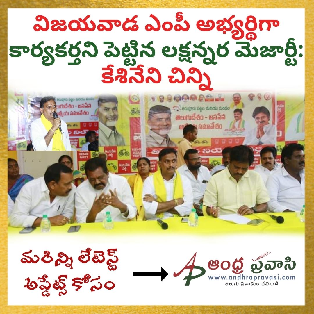 చంద్రబాబు నాయుడు విజయవాడ పార్లమెంట్లో ఒక కార్యకర్తని ఎంపీ అభ్యర్థిగా పెట్టిన లక్షన్నర మెజార్టీతో గెలిపిస్తారు -కేశినేని చిన్ని