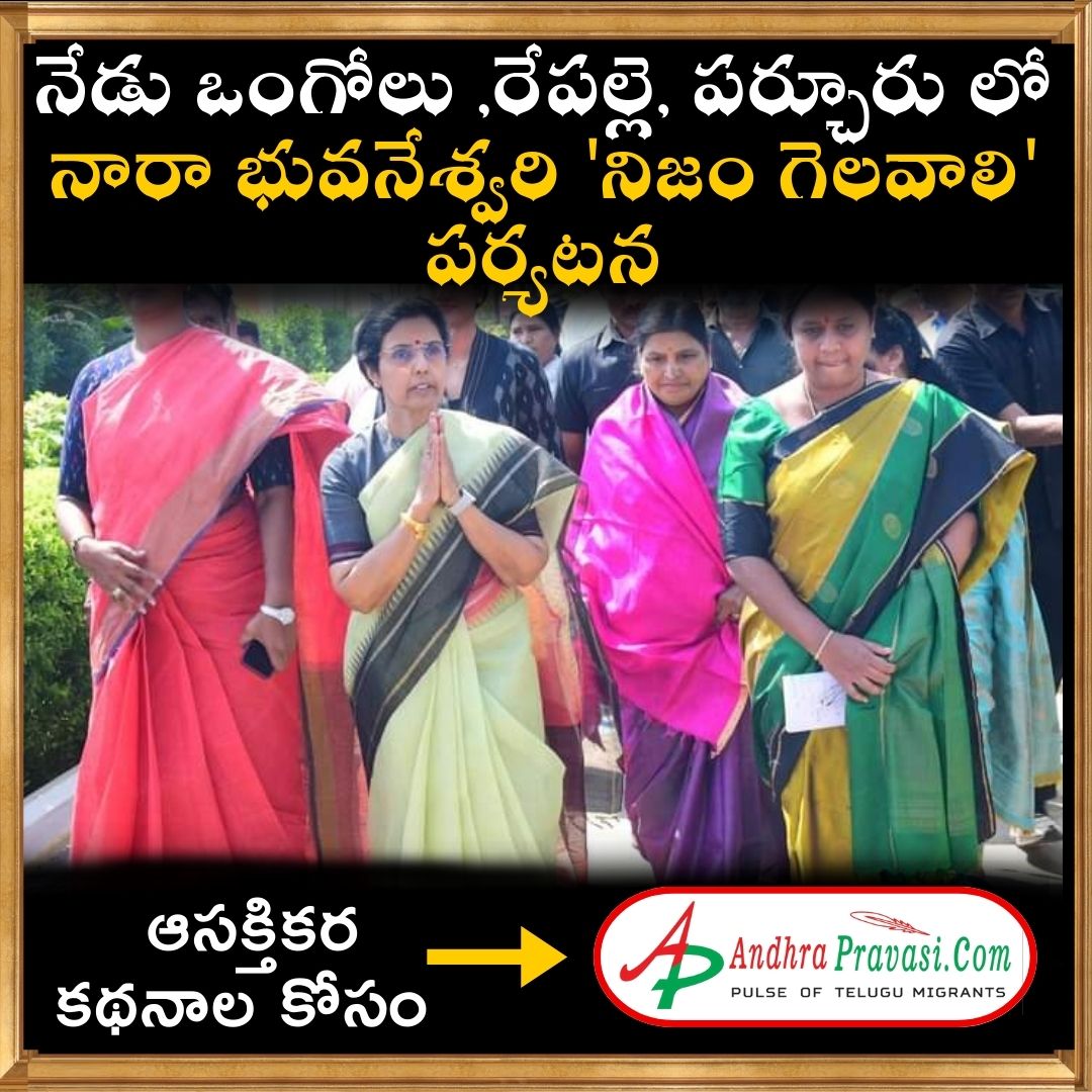 టీడీపీ అధినేత నారా చంద్రబాబు నాయుడు సతీమణి నారా భువనేశ్వరి నిజం గెలవాలి పేరుతో చంద్రబాబు అక్రమ అరెస్ట్ తట్టుకోలేక మృతి చెందిన కుటుంబాలను పరామర్శిస్తున్న సంగతి తెలిసిందే . ఈ యాత్ర లో భాగంగా నేటి నుంచి నాలుగు రోజుల పాటు బాపట్ల, ఒంగోలు, నెల్లూరు జిల్లాల్లో పర్యటించనున్నారు.
