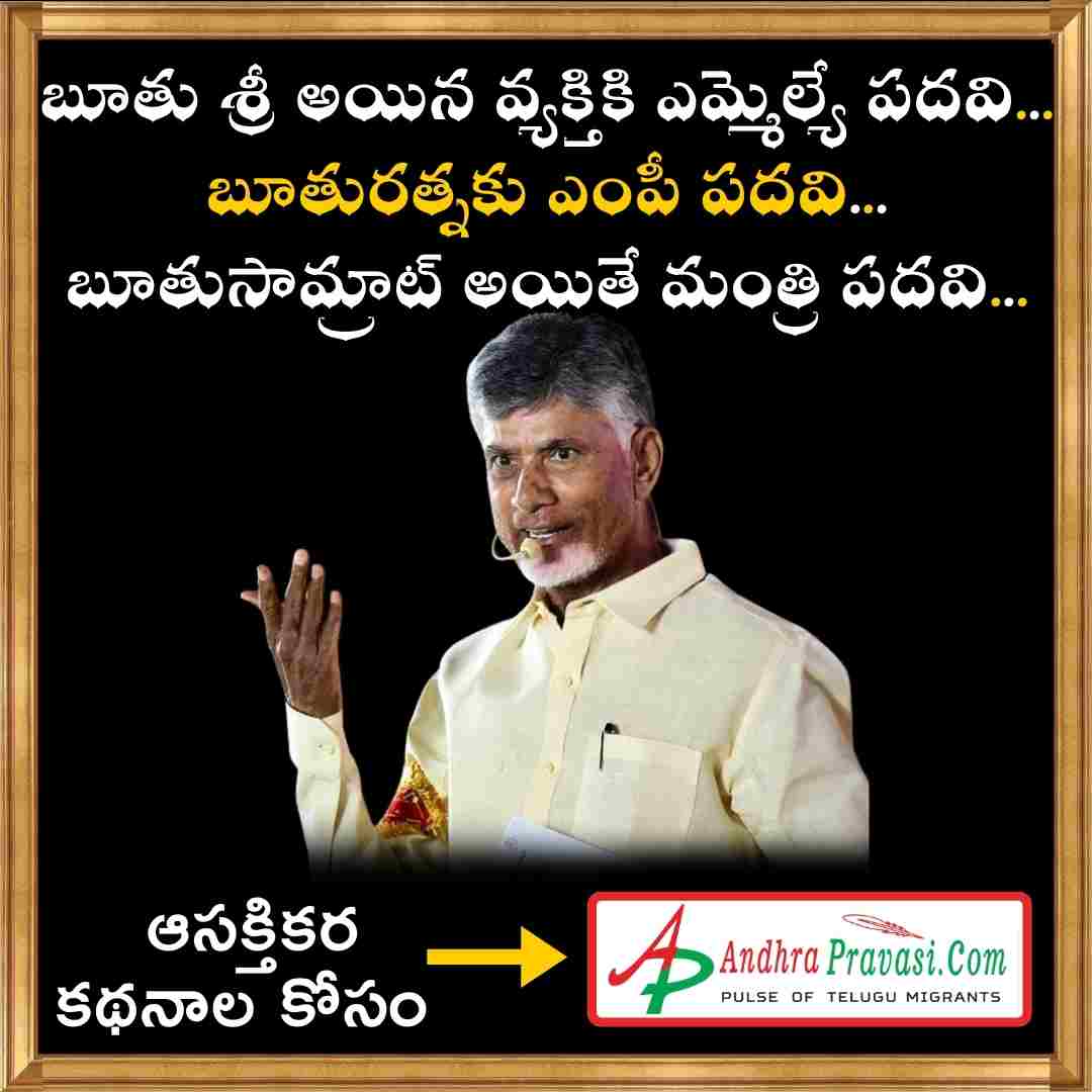 ముఖ్యమంత్రి పదవికి అర్హతలేని వ్యక్తి రాష్ట్రానికి ముఖ్యమంత్రి అయ్యాడు. బూతు శ్రీ అయిన వ్యక్తికి ఎమ్మెల్యే పదవి...బూతురత్నకు ఎంపీ పదవి.. బూతుసామ్రాట్ అయితే మంత్రి పదవి... ఇదీ ఈనాడు రాష్ట్రంలో సాగుతున్న రాజకీయం. ఎంపీలంటే పార్లమెంట్ లో మాట్లాడి కేంద్రాన్ని మెప్పించి రాష్ట్రానికి ప్రాజెక్టులు తీసుకురావాలి.