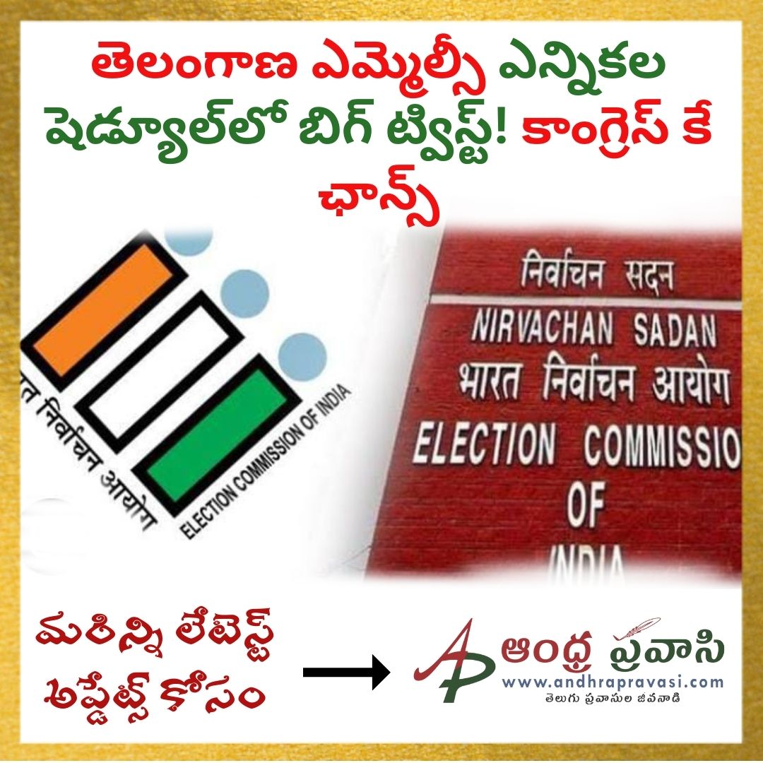 తెలంగాణ ఎమ్మెల్యే కోటా ఎమ్మెల్సీ ఎన్నికల షెడ్యూల్లో బిగ్ ట్విస్ట్ - 2 ఎమ్మెల్సీ స్థానాల భర్తీకి రెండు వేర్వేరు నోటిఫికేషన్లు ఇస్తున్నట్లు షెడ్యూల్లో ప్రకటించిన కేంద్ర ఎన్నికల సంఘం - ఎమ్మెల్సీ స్థానాలకు వేర్వేరుగా ఎన్నికలు జరిగితే తెలంగాణలో మారనున్న పొలిటికల్ సీన్ - ఎమ్మెల్యే కోటా ఎమ్మెల్సీ స్థానాలు అధికార కాంగ్రెస్కు దక్కే అవకాశం.