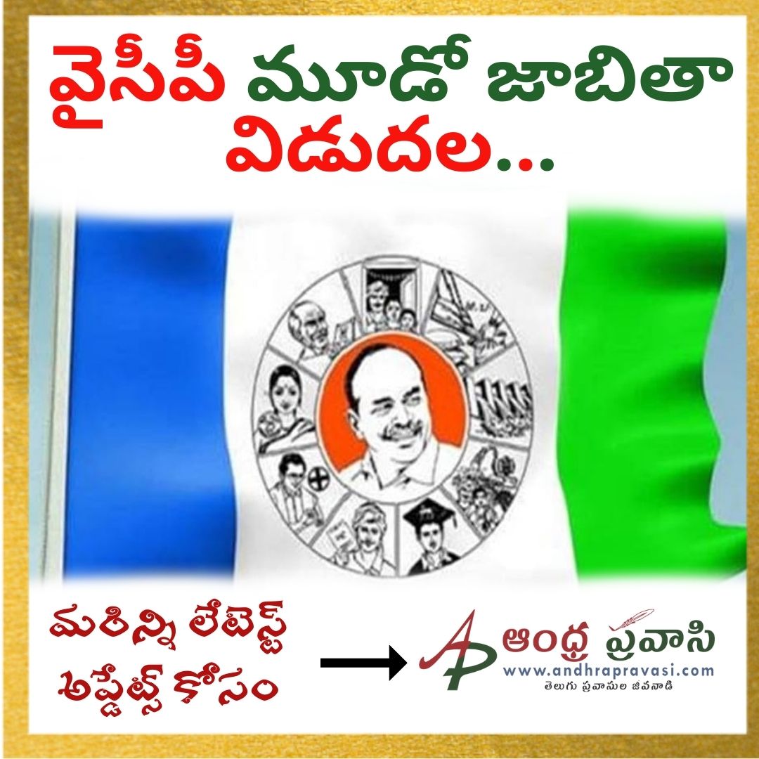 వైసీపీ మూడో జాబితాను పార్టీ కేంద్ర కార్యాలయంలో గురువారం రాత్రి విడుదల చేసింది. రీజినల్ కోఆర్డినేటర్లు, ముఖ్యనేతలతో చర్చించిన అనంతరం ఈమేరకు సీఎం జగన్ నిర్ణయం తీసుకున్నారు. మొదటి, రెండో జాబితాలను ఇప్పటికే ప్రకటించిన విషయం తెలిసిందే.