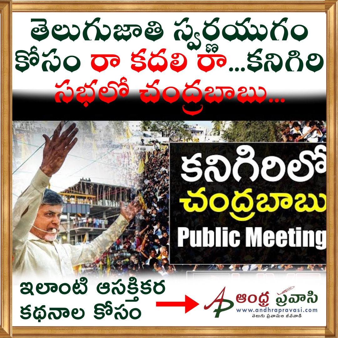 తెలుగుజాతి స్వర్ణయుగం కోసం రా కదలి రా.. తెలుగు ప్రజల ఆత్మగౌరవం కోసం అందరూ కదిలి రావాలి. వెలిగొండ ప్రాజెక్టు పూర్తి కోసం రా..కదిలిరా.. మార్కాపురం జిల్లా కోసం