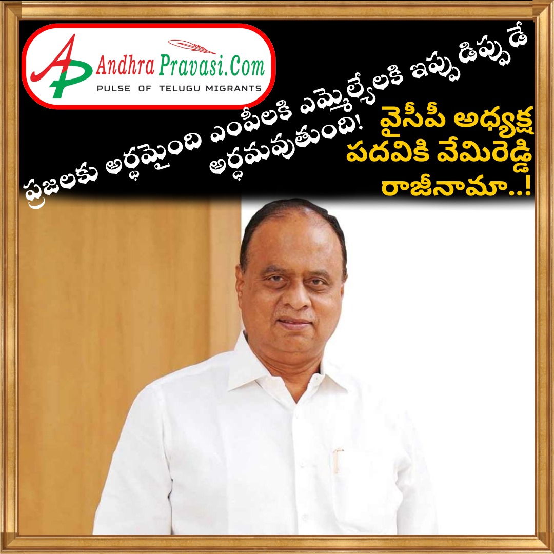 - నెల్లూరు జిల్లా వైసీపీ అధ్యక్ష పదవికి వేమిరెడ్డి రాజీనామా