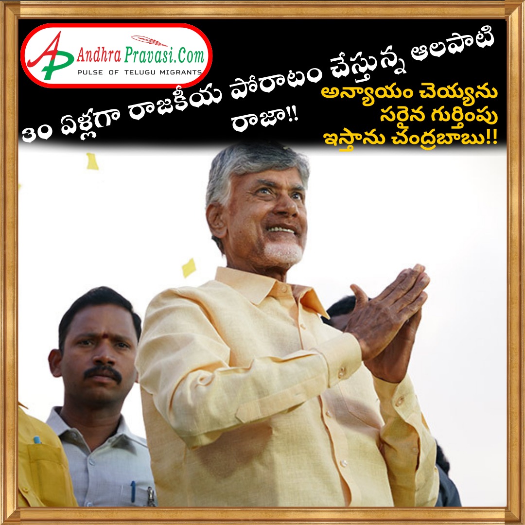 అమరావతి: టికెట్ రాని ఆశావహులకు చంద్రబాబు బుజ్జగింపు - చంద్రబాబును ఆయన నివాసంలో కలిసిన ఆలపాటి రాజా - పొత్తులో తెనాలి సీటు జనసేనకు వెళ్లినందుకు గుంటూరు-2 ఆశించిన రాజా - గుంటూరు-2కు అభ్యర్థిని ప్రకటించాక పెనమలూరుకు రాజా పేరు పరిశీలన - చంద్రబాబును కలిసిన ఎస్సీ సెల్ అధ్యక్షుడు ఎంఎస్ రాజు - బాపట్ల లోక్ సభ స్థానం ఆశించిన ఎస్సీ సెల్ అధ్యక్షుడు ఎంఎస్ రాజు – పొత్తులో భాగంగా జరిగిన సర్దుబాటును అర్ధం చేసుకోవాలన్న చంద్రబాబు