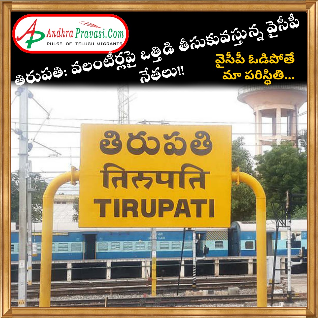 తిరుపతి: వలంటీర్లపై ఒత్తిడి తీసుకువస్తున్న వైసీపీ నేతలు - రాజీనామా చేసి ప్రచారంలో పాల్గొనాలని ఒత్తిడి - రాజీనామా చేయాలని వలంటీర్లను ఆదేశించిన MLO - అధికారంలోకి వచ్చిన తర్వాత మళ్లీ తీసుకుంటామని హామీ