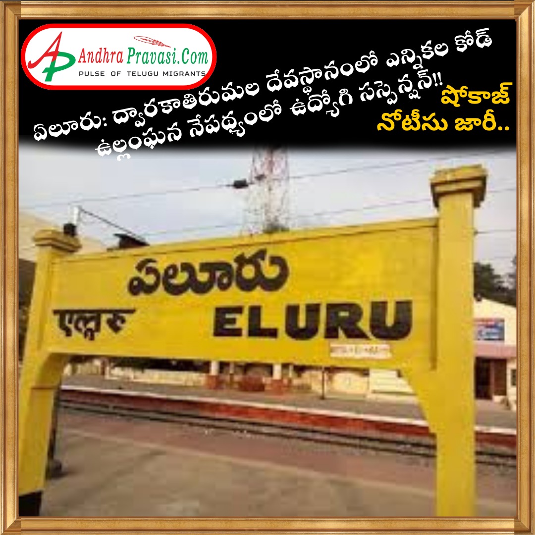 ఏలూరు: ద్వారకాతిరుమల దేవస్థానంలో ఎన్నికల కోడ్ ఉల్లంఘన నేపథ్యంలో ఉద్యోగి సస్పెన్షన్ – కేశ ఖండనశాలలో కోడ్ ఉల్లంఘిస్తూ వైసీపీ కరపత్రాలు పంపిణీ – కేశ ఖండనశాల సూపరింటెండెంట్ ను సస్పెండ్ చేసిన ఈవో త్రినాథరావు