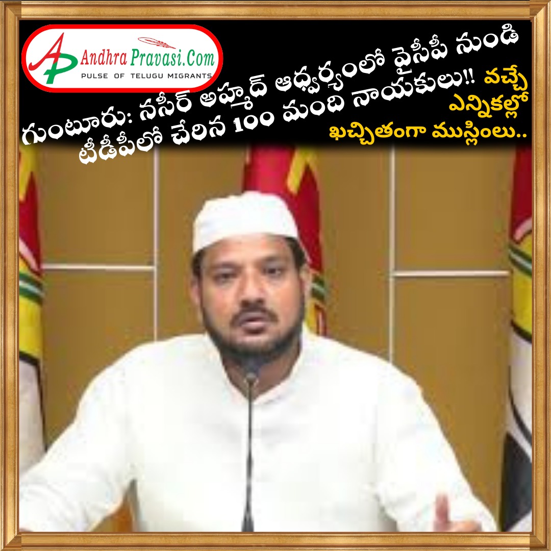 టీడీపీ నేత నసీర్ అహ్మద్ ఆధ్వర్యంలో వైసీపీ నుండి టీడీపీలో చేరిన 100 మంది మైనారిటీ నాయకులు – నసీర్, పెమ్మసాని రవి టీడీపీ కండువా కప్పి పార్టీలోకి ఆహ్వానించారు