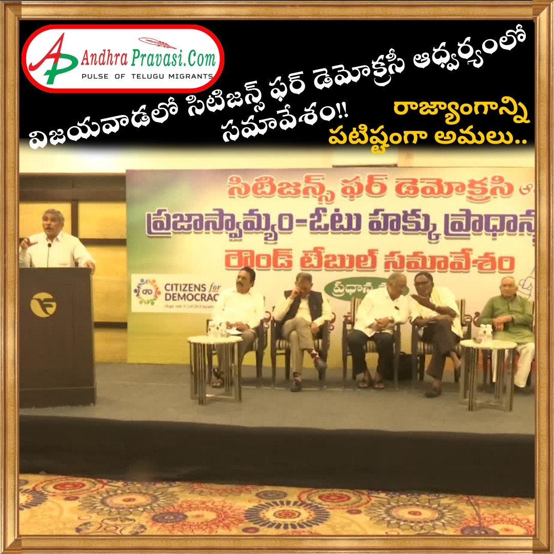 విజయవాడలో సిటిజన్స్ ఫర్ డెమోక్రసీ ఆధ్వర్యంలో సమావేశం - ప్రజాస్వామ్య భావాలు అంతర్గతంగా ప్రజల్లో ఎప్పుడూ ఉంటాయి - రాజ్యాంగాన్ని పటిష్టంగా అమలు చేస్తేనే ప్రజాస్వామ్యం పటిష్టమవుతుంది