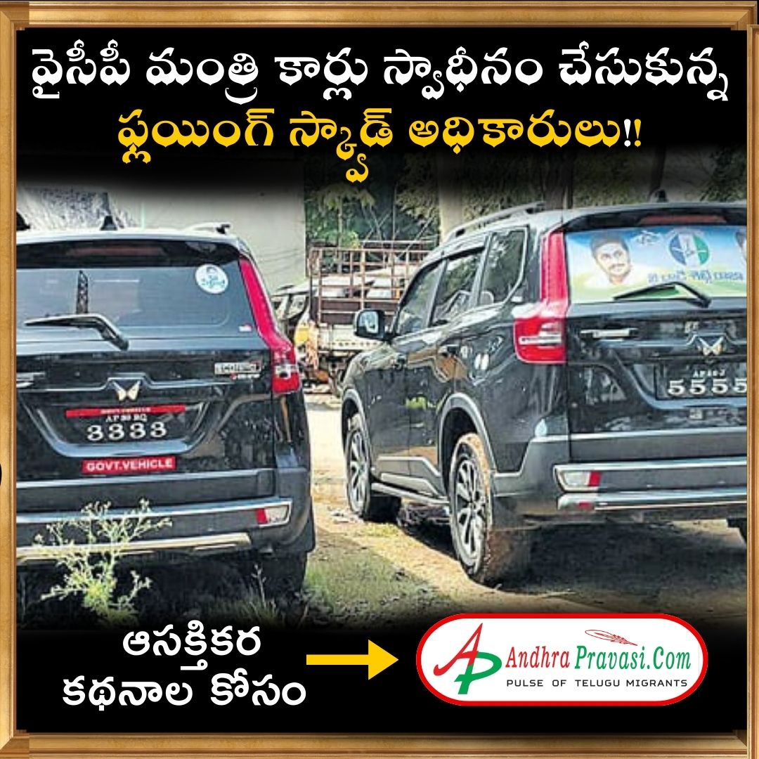 గాజువాక, కూర్మన్నపాలెం, న్యూస్టుడే: ఎన్నికల కోడ్ అమల్లో ఉండగా... నిబంధనలకు విరుద్ధంగా ప్రయాణించిన రాష్ట్ర మంత్రి దాడిశెట్టి రాజాకు చెందిన రెండు కార్లను ఎన్నికల ఫ్లయింగ్ స్క్వాడ్ అధికారులు విశాఖలో అదుపులోకి తీసుకున్నారు. వైసీపీ జెండా రంగులు, సిద్ధం స్టిక్కర్లు ఉన్న రెండు ప్రభుత్వ వాహనాలు విశాఖ విమానాశ్రయం నుంచి బయలుదేరాయన్న సమాచారంతో తనిఖీ.