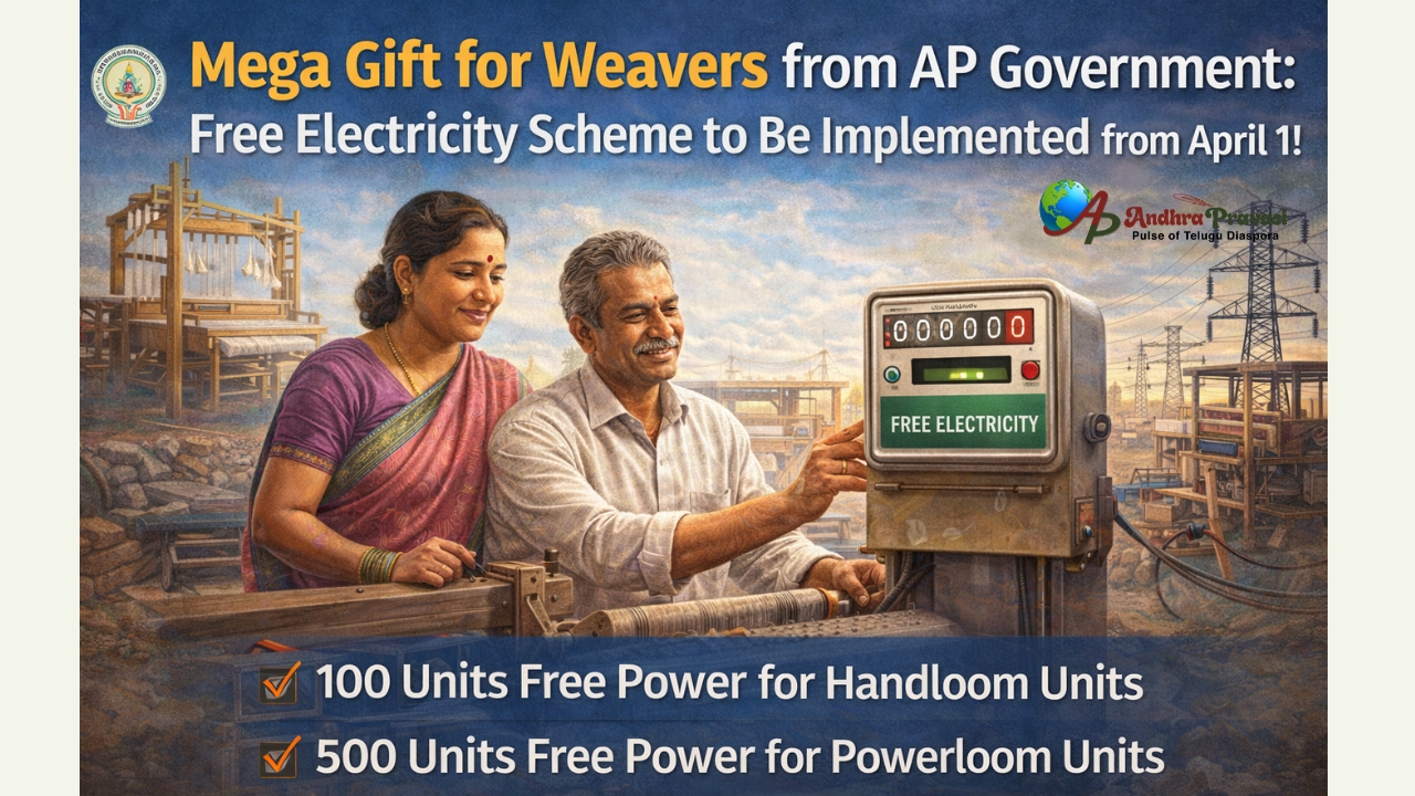 ఆంధ్రప్రదేశ్ ప్రభుత్వం రాష్ట్రంలోని నేత కార్మికులకు భారీ ఊరటనిస్తూ ఏప్రిల్ 1వ తేదీ నుండి ఉచిత విద్యుత్ పథకాన్ని అమలు చేయనున్నట్లు ప్రకటించింది. చేనేత (Handloom) మరియు పవర్‌లూమ్ (Powerloom) రంగాలపై ఆధారపడి జీవిస్తున్న వేలాది కుటుంబాల ఆర్థిక భారాన్ని తగ్గించడమే ఈ నిర్ణయం వెనుక ఉన్న ప్రధాన ఉద్దేశ్యం. పెరుగుతున్న ఉత్పత్తి వ్యయం మరియు తక్కువ ఆదాయంతో ఇబ్బందులు పడుతున్న నేతన్నలకు ఈ పథకం ఒక గొప్ప వరంగా మారనుంది.