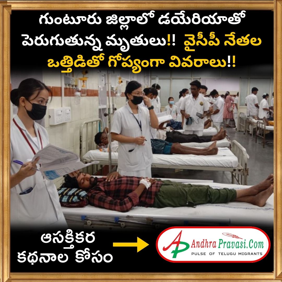 గుంటూరు జిల్లాలో డయేరియా విజృంభణ... ఇప్పటివరకు డయేరియాతో నలుగురు మృతి... వందల సంఖ్యలో పలు ఆస్పత్రుల్లో బాధితులకు చికిత్స...బాధితుల వివరాలు గోప్యంగా ఉంచుతున్న అధికారులు. ప్రభుత్వ పెద్దల ఒత్తిడితో అధికారుల గోప్యతపై మండిపడుతున్న ప్రజలు.