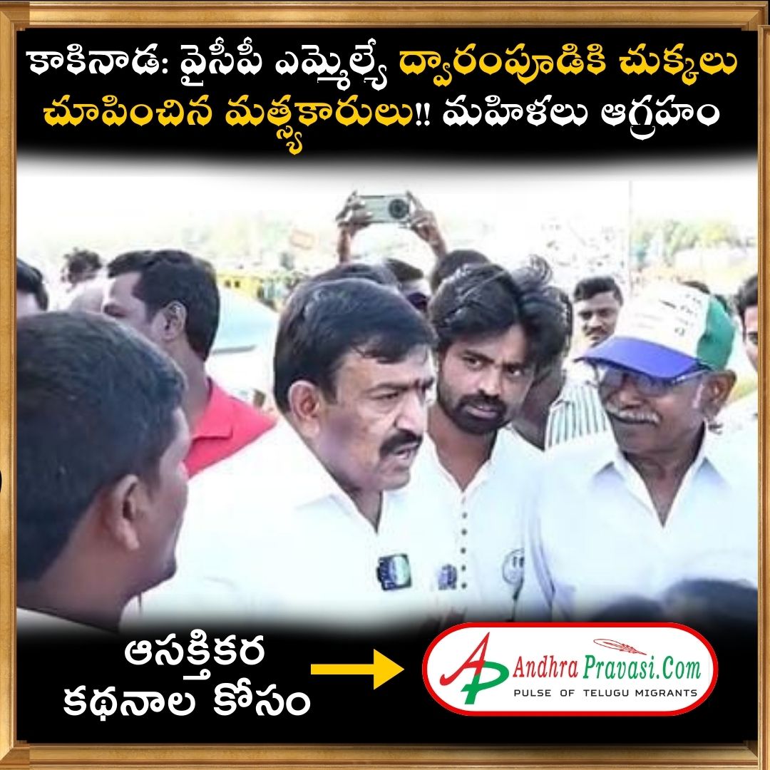 కాకినాడ సిటీ వైసీపీ ఎమ్మెల్యే ద్వారంపూడికి చుక్కెదురు... తొలిరోజు ఎన్నికల ప్రచారానికి వెళ్లిన ద్వారంపూడిని నిలదీసిన జనం... కాకినాడ ఏటిమెగలో చుక్కలు చూపించిన మత్స్యకారులు... ఏటిమొగ వచ్చి ఎన్ని ఏళ్లయిందంటూ ద్వారంపూడిని నిలదీసిన మత్స్యకారులు...