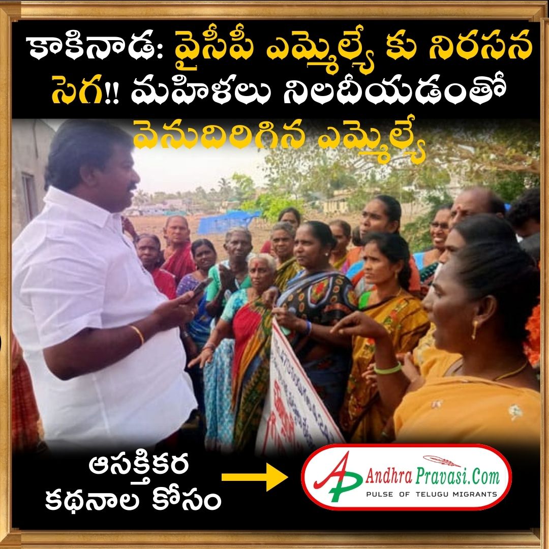 వైసీపీ ఎమ్మెల్యే సతీశ్ కుమార్ కు నిరసన సెగ తగిలింది. కాకినాడ జిల్లా తాళ్లరేవు మండలం చొల్లంగి గ్రామానికి ఎన్నికల ప్రచారం నిమిత్తం వచ్చిన ఆయన్ను శనివారం ఉదయం గ్రామస్థులు అడ్డుకున్నారు. ఇళ్ల స్థలాలు ఇవ్వాలంటూ 45 రోజుల నుంచి దీక్షలు చేస్తే.. ఈరోజు ఓట్ల కోసం గుర్తుకువచ్చామా అంటూ మహిళలు నిలదీశారు.