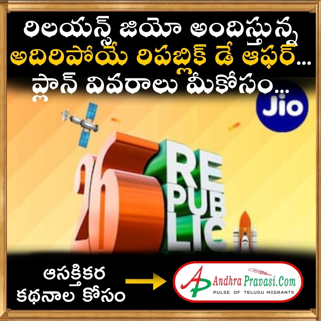 ఇండియా రిపబ్లిక్ డే సందర్భంగా రిలయన్స్ జియో సంస్థ తన కస్టమర్ల కోసం రిపబ్లిక్ డే ఆఫర్ ప్లాన్ తెచ్చింది...